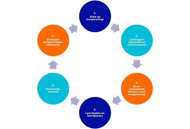 De visie van een school op burgerschap speelt een centrale rol als begin- en eindpunt van een ontwikkeling. Die visie vormt de basis voor het in samenhang en doelgericht werken aan burgerschapsonderwijs.