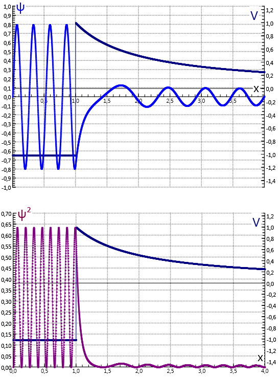 Voor afstanden groter dan R1 bepaald door de vergelijking Vc(R1) = Eα is de kinetische energie groter dan de potentiele energie en is het deeltje ontsnapt aan de kern.